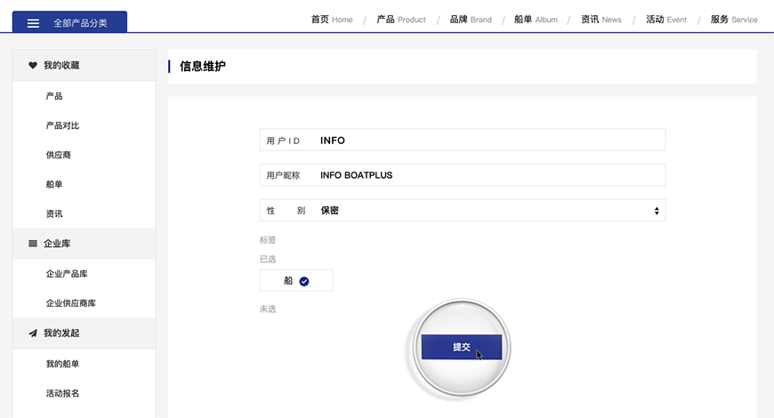 個人信息維護主要用來更改用戶昵稱、性別和添加用戶標簽: