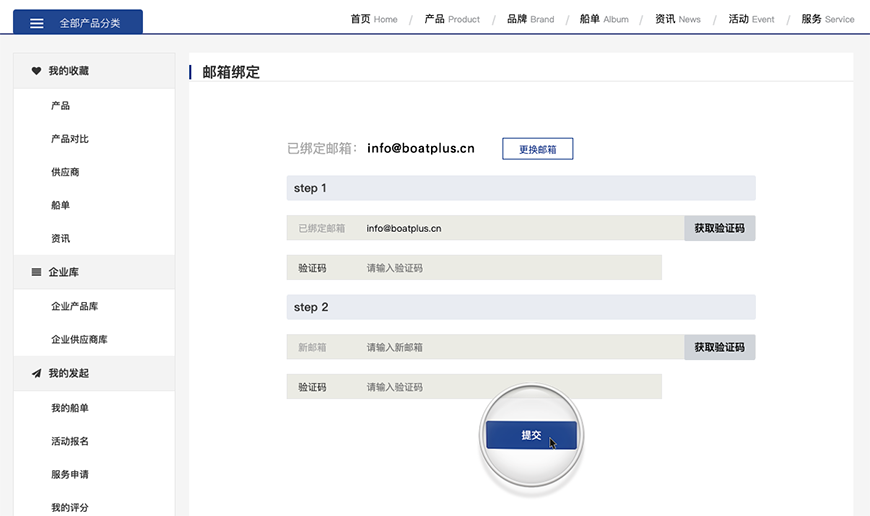 郵箱管理主要包括當前已經綁定的郵箱號。點擊更換郵箱會先驗證之前的郵箱賬號,然后再添加自己更改之后的新郵箱。兩個密碼都需要獲取驗證碼去驗證。