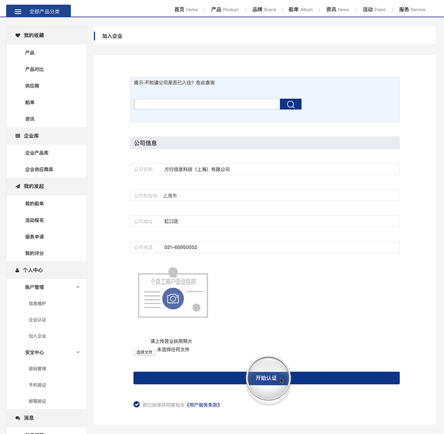 公司信息(公司名稱、公司所在地、公司地址、公司電話、上傳營業執照):