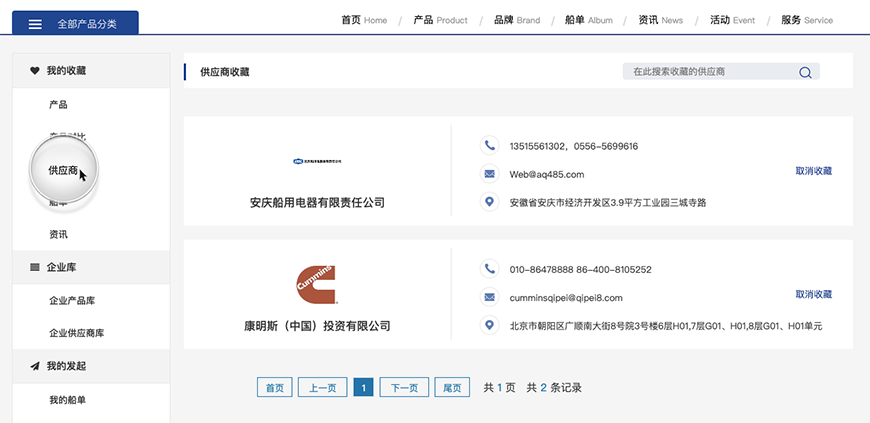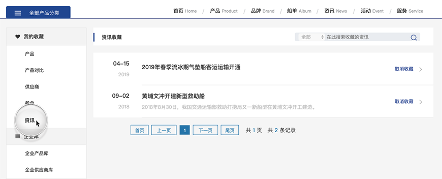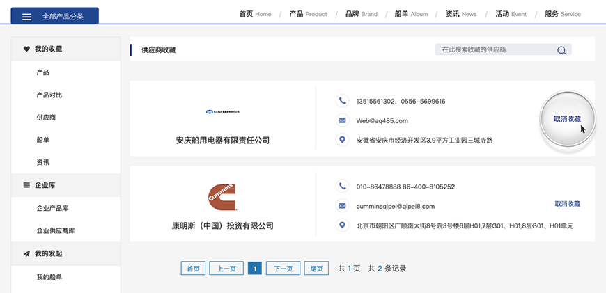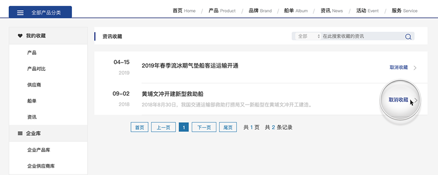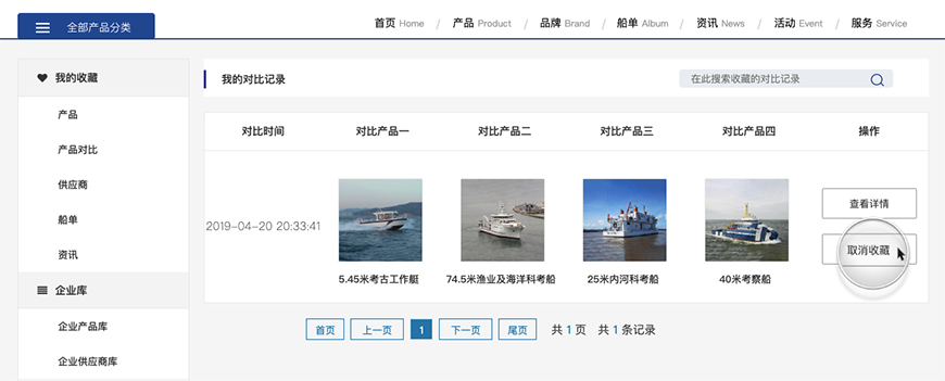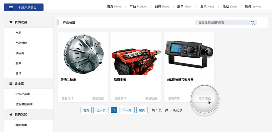 可以在我的收藏產品里面取消某個產品的收藏,并進行搜索。