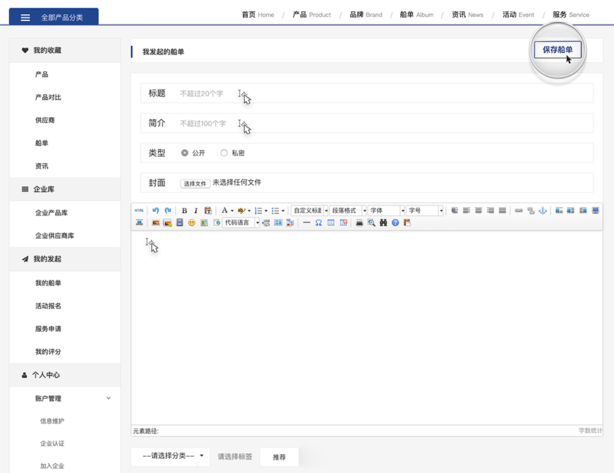 一是船單的基本信息,包括標題、日期、描述、文件等。