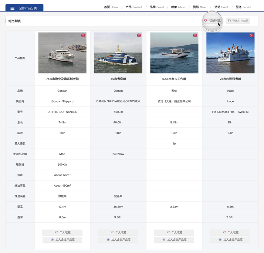 添加產品對比記錄:
