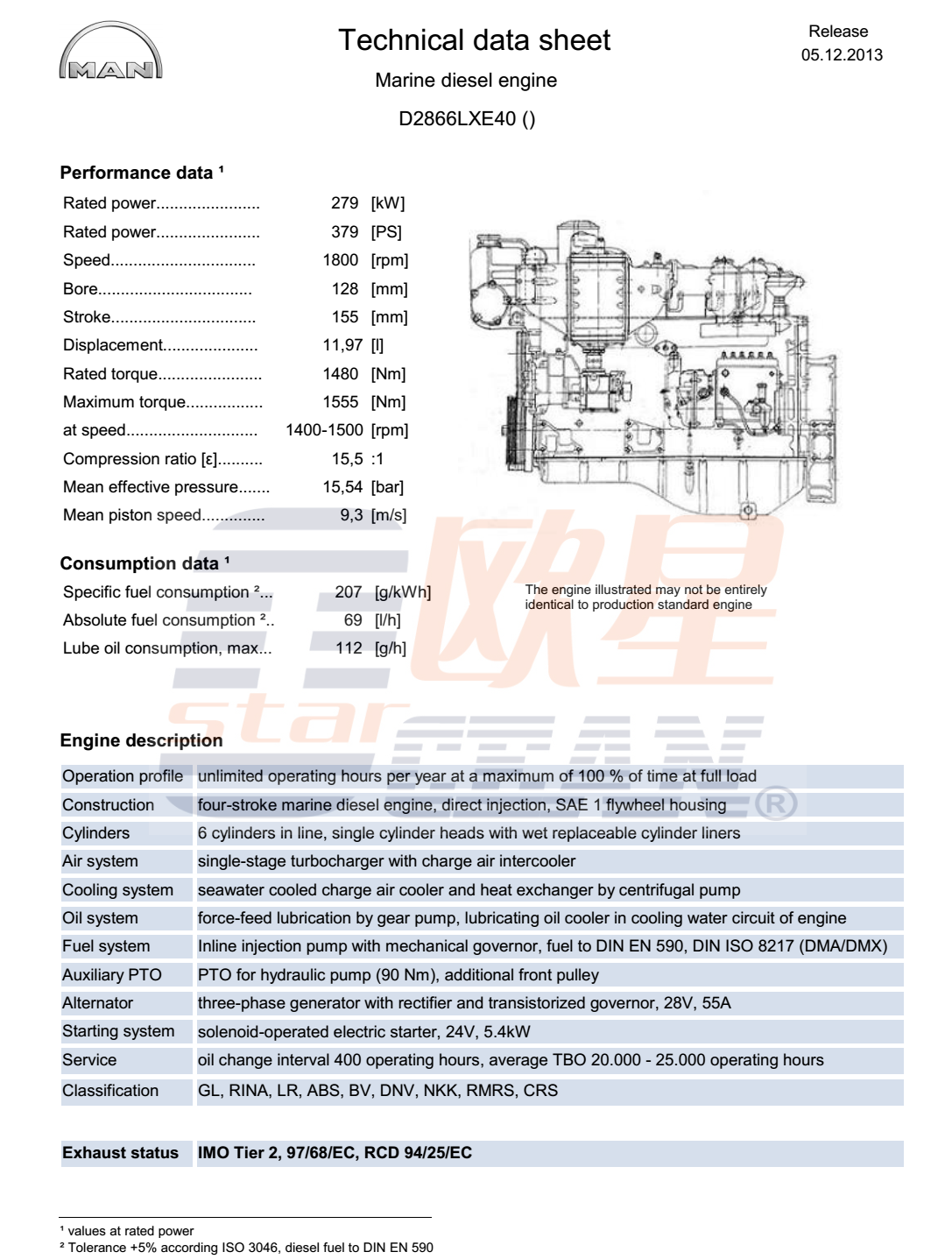 | 最大允許進氣負壓(進氣濾器后): | 30mbar | 廢氣導熱: | 146kw |