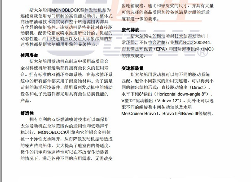 | 轉(zhuǎn)速范圍: | 3500-4100rpm | 排放標準: | EPA Tier III,RCD, 9768EC Rhein IMO Nox, RINA, IMO Solas |