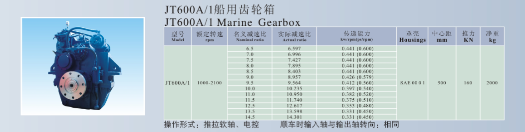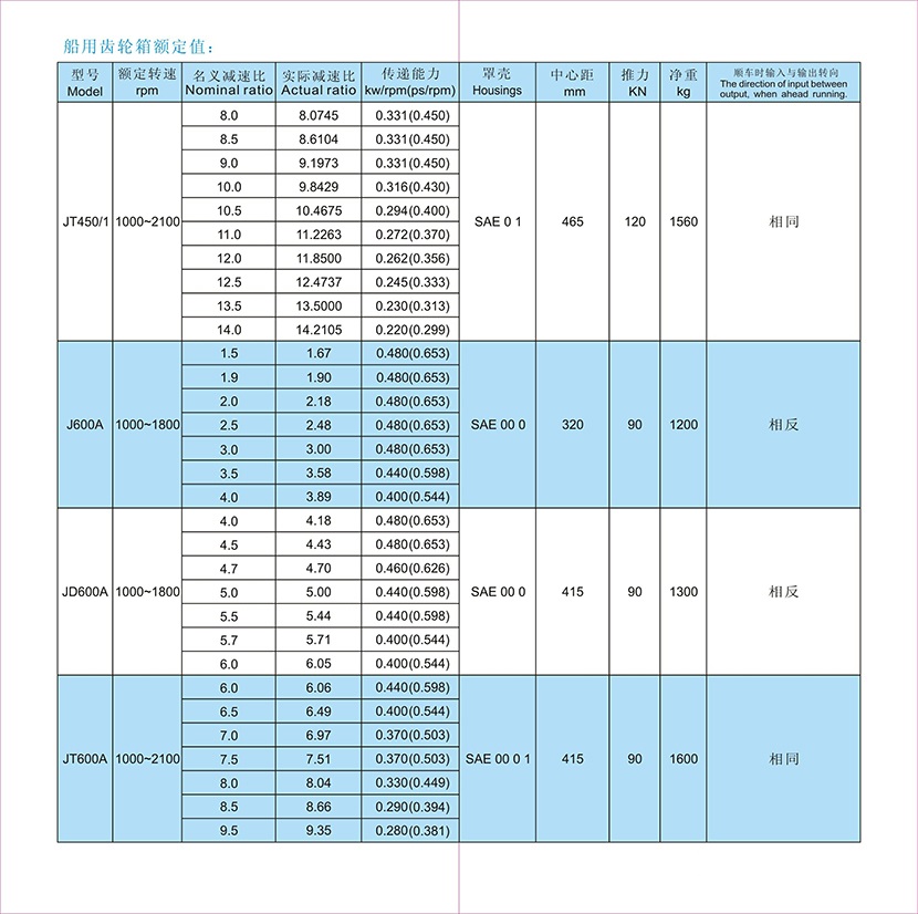 | 前進名義減速比: | 6.5 | 輸入轉速: | 1000-2100rpm |