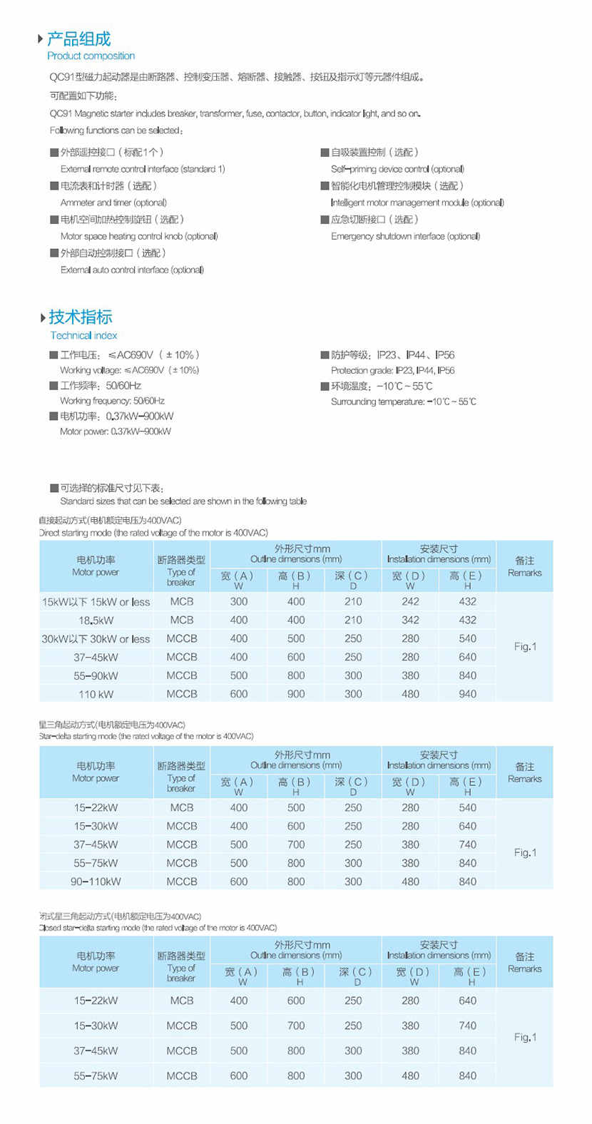 外形尺寸(寬高深): 800mm×1800mm×800mm 工作電壓: ≤AC690V(±10%)