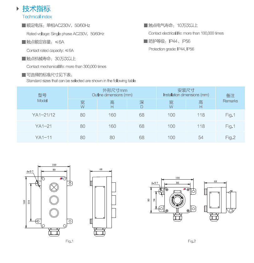 觸點電氣壽命: 10萬次以上 外形尺寸(寬高深): 80mm×160mm×68mm