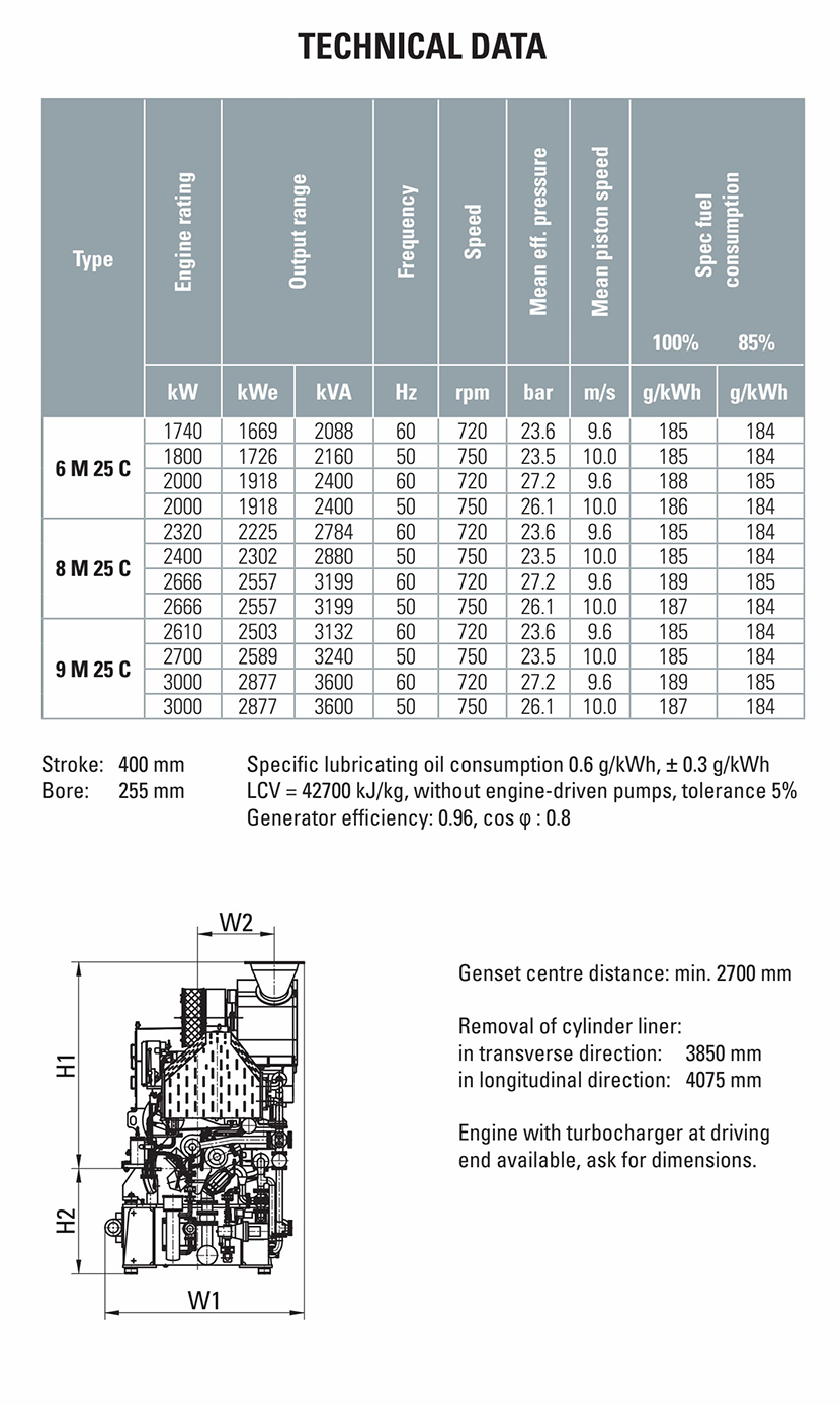 輸出容量: 3132kVA 燃油消耗: 185g/kWh