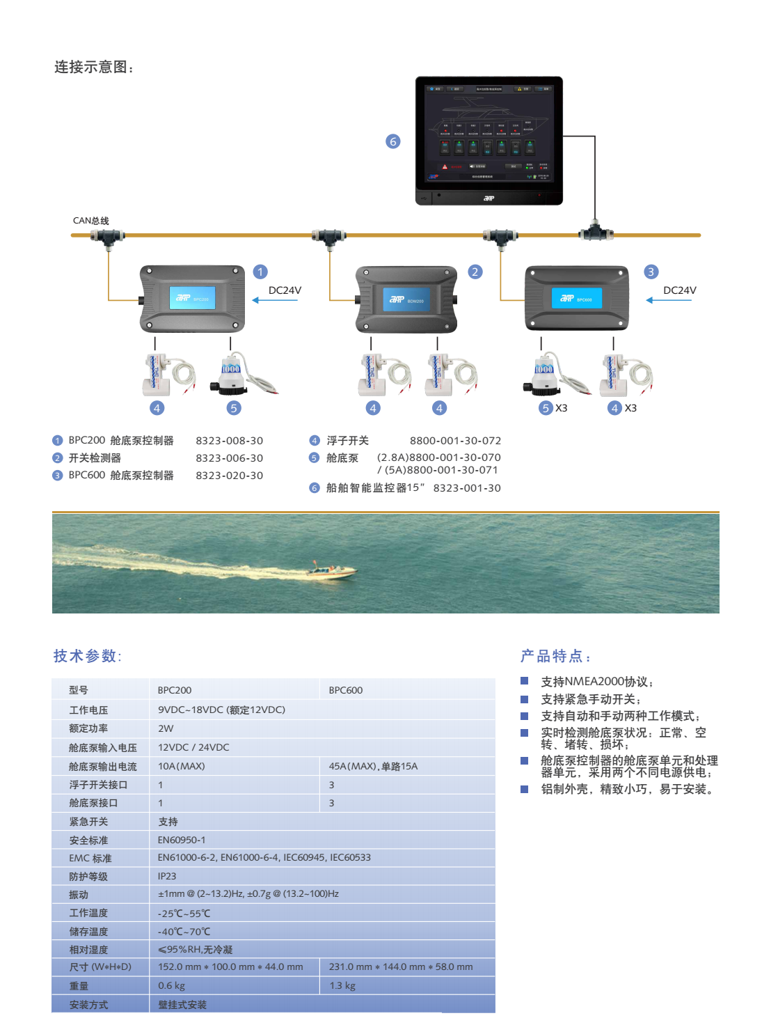 艙底泵輸入電壓: 12VDC 艙底泵輸出電流: 45A(MAX),單路15A