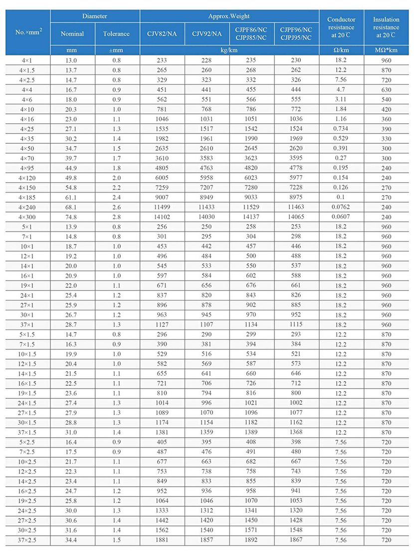 | 交聯聚乙烯絕緣阻燃及耐火低壓電力及控制電纜 | |||