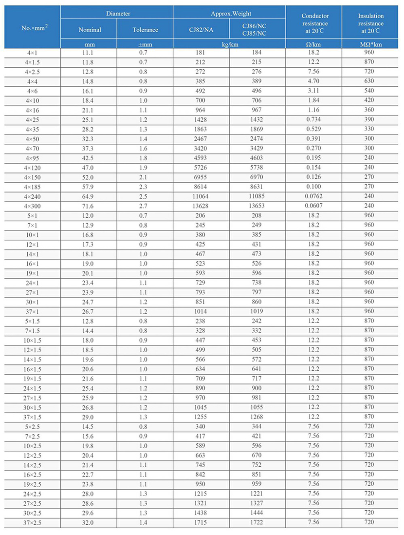 類型: 交聯聚乙烯絕緣阻燃及耐火低壓電力及控制電纜 名義直徑: 11.8mm