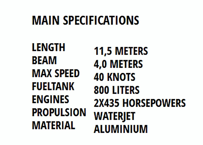 發動機功率: 2x435hp 推進裝置: 噴泵