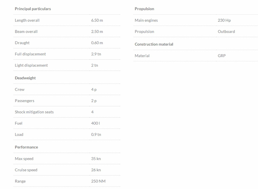 總長: 6.50m 航速: 35kn