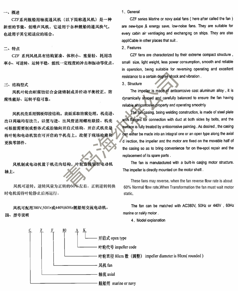 CZF系列艦船用軸流通風(fēng)機(jī)