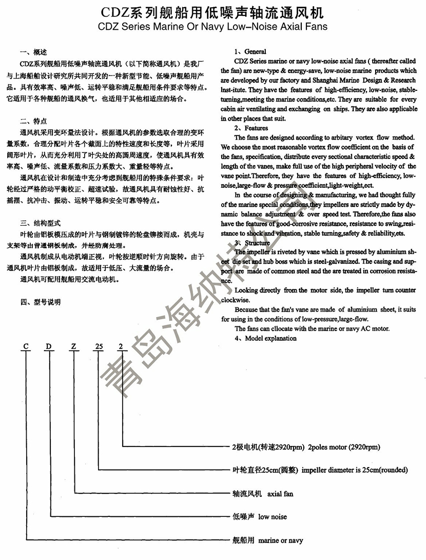 | CDZ系列艦船用低噪聲軸流通風機 | |||