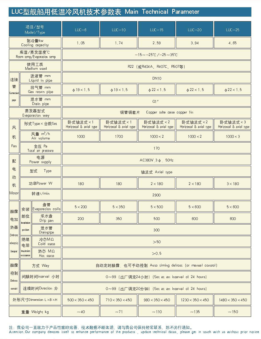 蒸發器型式: 銅管銅套片 風機型式: 臥式軸流式
