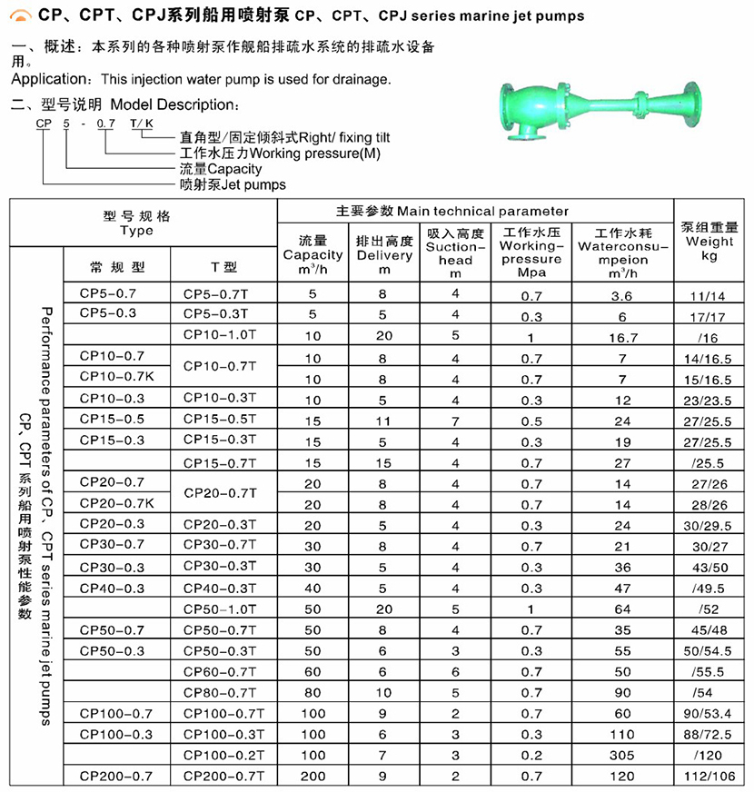 泵組重量: 11/14kg 工作水耗: 3.6m3/h