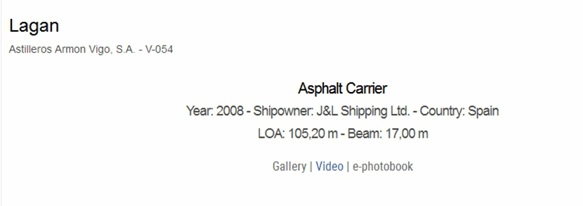 總長: 105.20m 船東: J&L Shipping Ltd