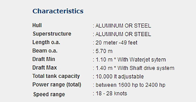 總長: 20m 航速: 18kn