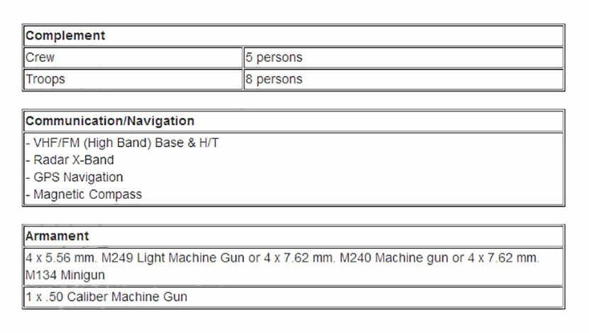 | 最大乘員: | 8p | 船組人員: | 5 P |