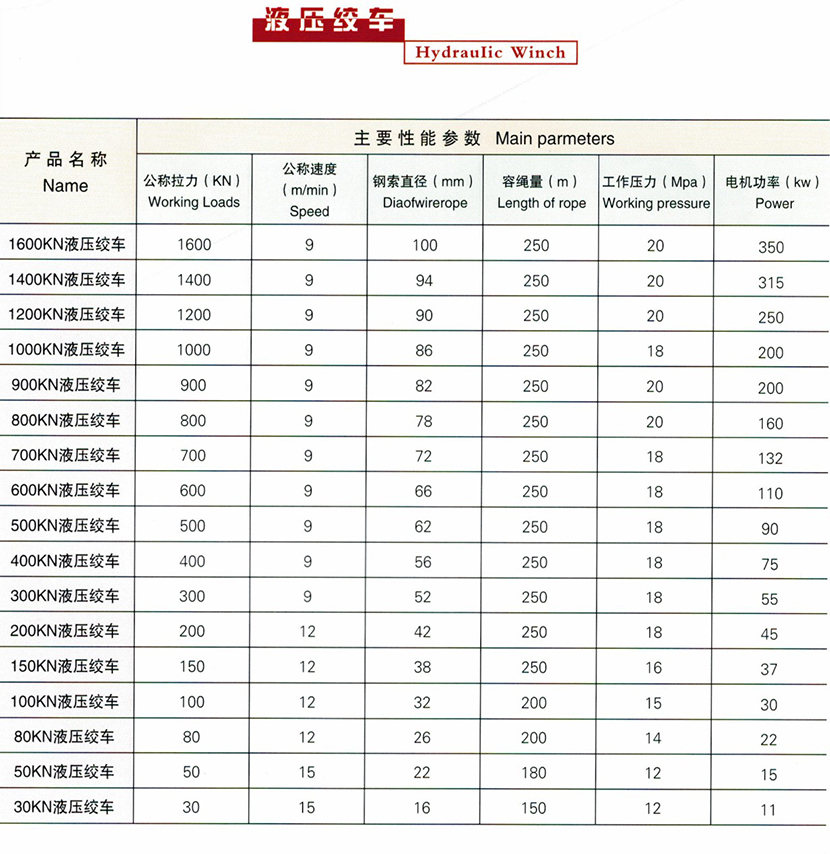 | 鋼索直徑: | 94mm | 繩容量: | 250m |