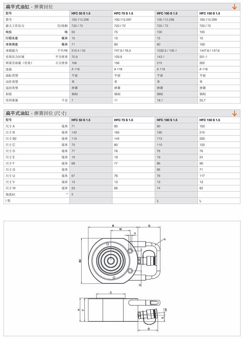 扁平式彈簧回位油缸