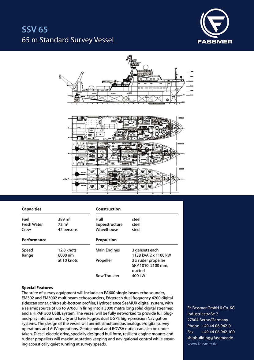 | 發(fā)動機功率: | 2 x 1100kW | 推進裝置: | 2 x ruder propellerSRP 1010,2100 mm,ducted |