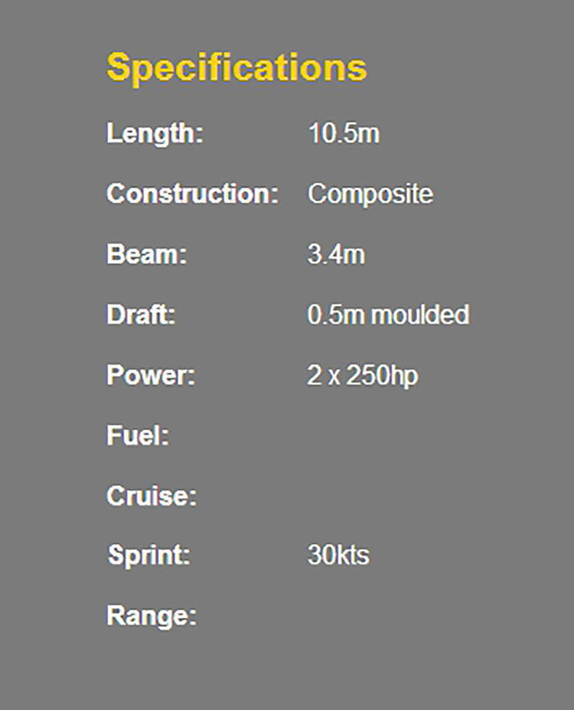 | 船體材料: | 其他 | 發動機功率: | 2×250hp |
