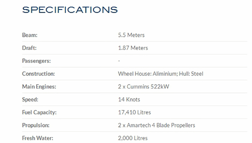 航速: 14kn 船體材料: 鋼鋁