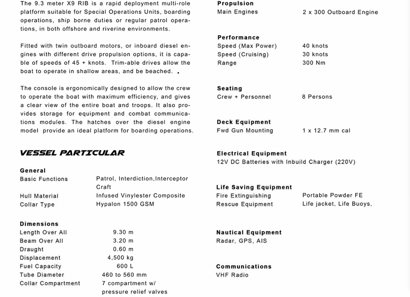 燃油容量: 600l 發動機功率: 2x300 outboard engine
