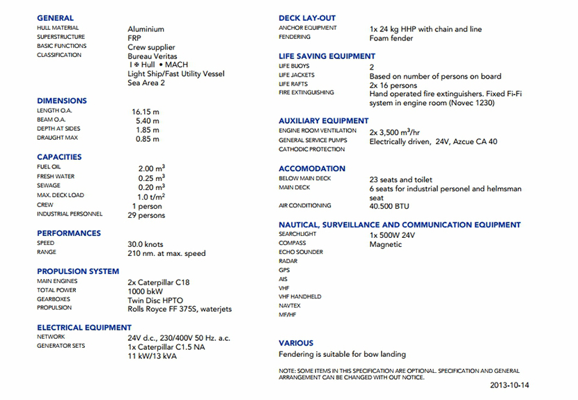 | 發(fā)電機(jī)組: | 2×Caterpilar C18 | 船組人員: | 1P |