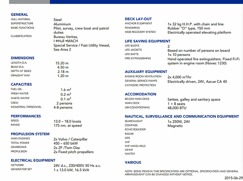 | 發電機組: | 2×Caterpilar /Volvo | 船組人員: | 2 P |