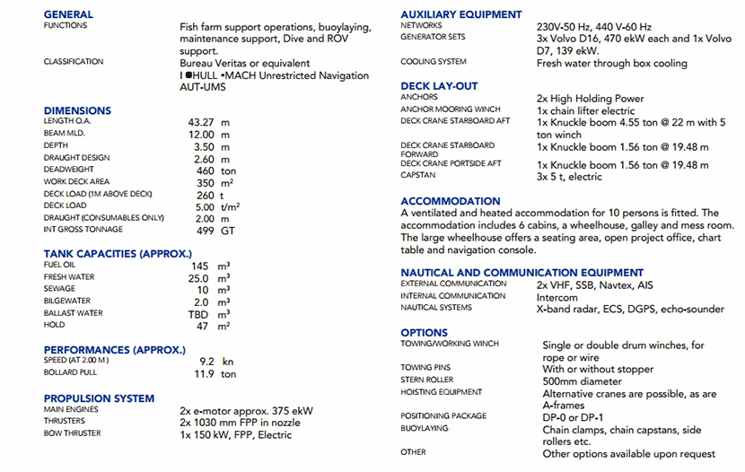 | 發電機組: | 2×e-motor ,375ekw | 齒輪箱: | 3×Volvo D16,470 ekW each and 1×Volvo D7,139ekW |