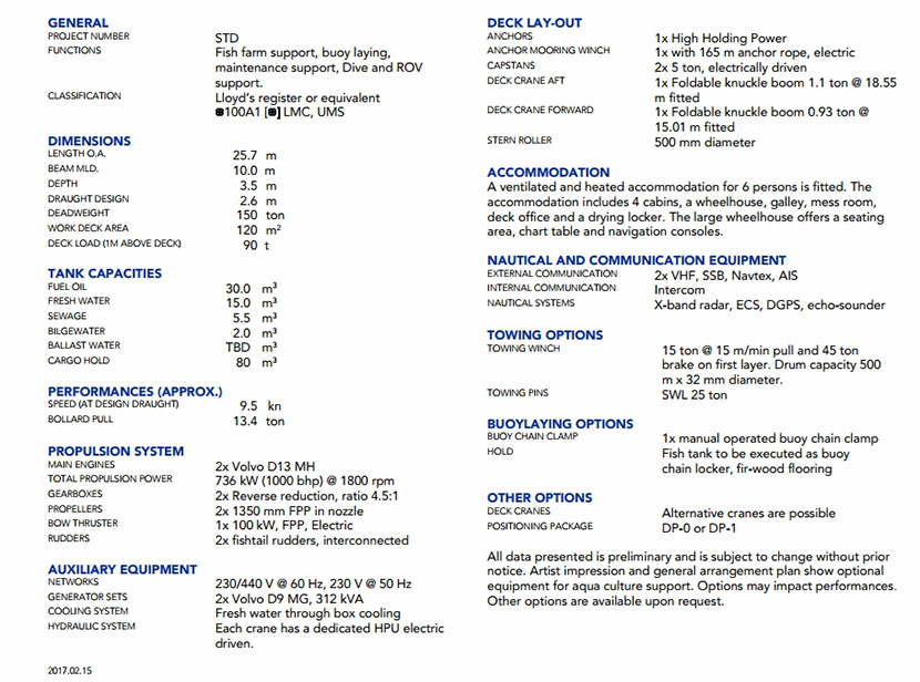 | 發電機組: | 2×Volvo D13 | 齒輪箱: | 2×Reverse reduction |