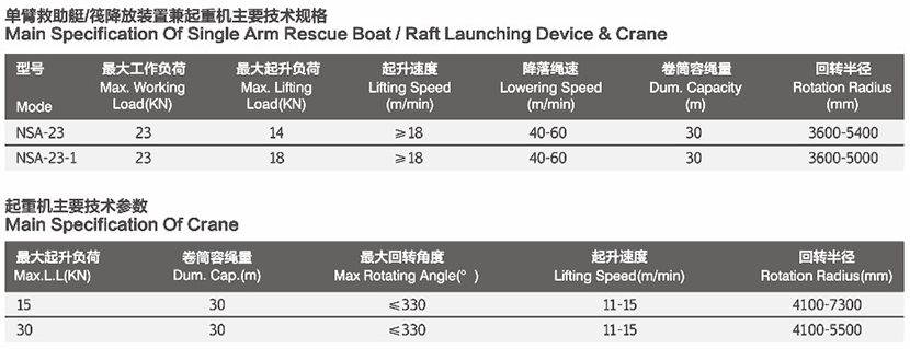 | 單臂救助艇-筏降放裝置兼起重機(jī) | |||