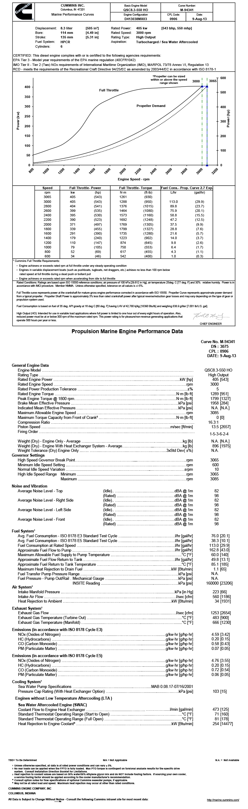 排放標準: EPA Tier 3-Model year requirements of the EPA marine regulation(40CFR1042); IMO Tier II-Tier2(Two)NOx requirements of International Maritime Organization(IMO),MARPOL 73/78 Annex VI,Regulation 13;RCD-meets the requirements of the recreational Craft Directive 94/25/EC as amended by 2003/44/EC in accordance with ISO 8178-1