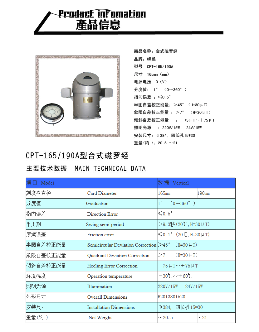 | 類型: | 磁羅經 | 重量: | 20.5kg |