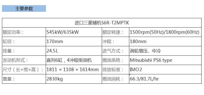| 燃油消耗: | 81.7L/hr | 缸數(shù): | 6 |