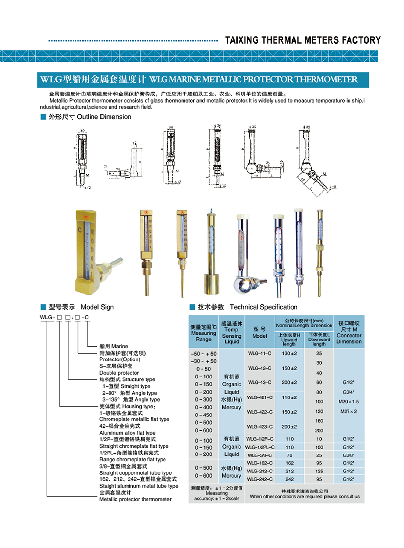 | WLG型船用金屬套溫度計 | |||