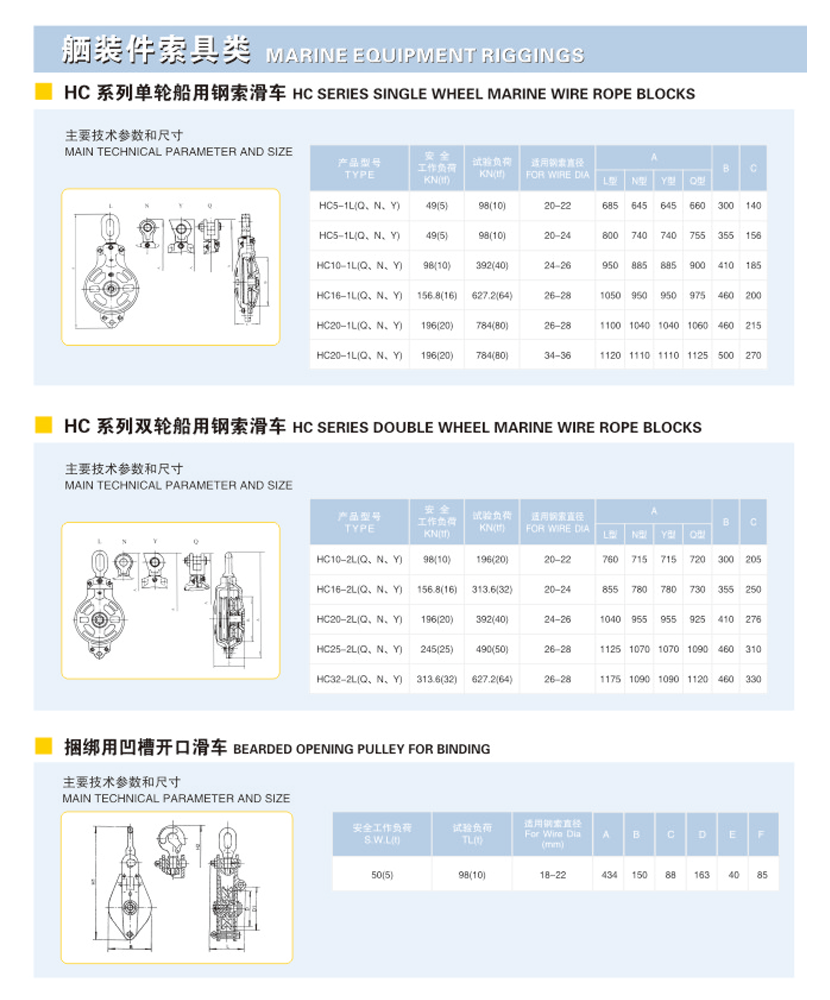 | HC系列雙輪船用鋼索滑車 | |||