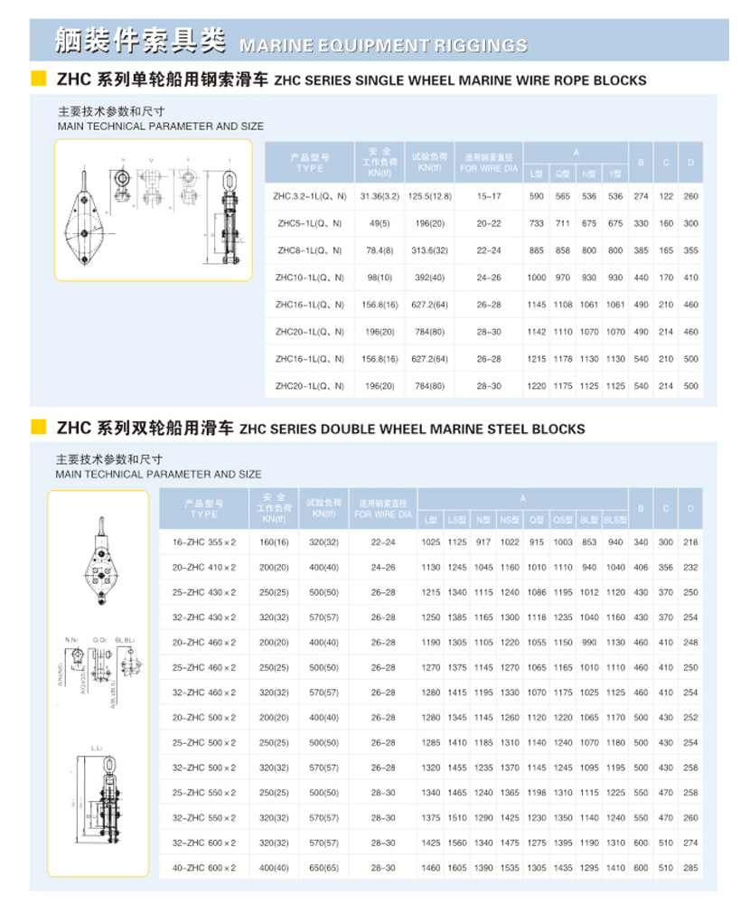 ZHC系列單輪船用鋼索滑車