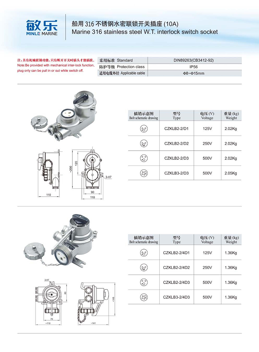 | 船用316不銹鋼水密聯鎖開關插座(10A) | |||