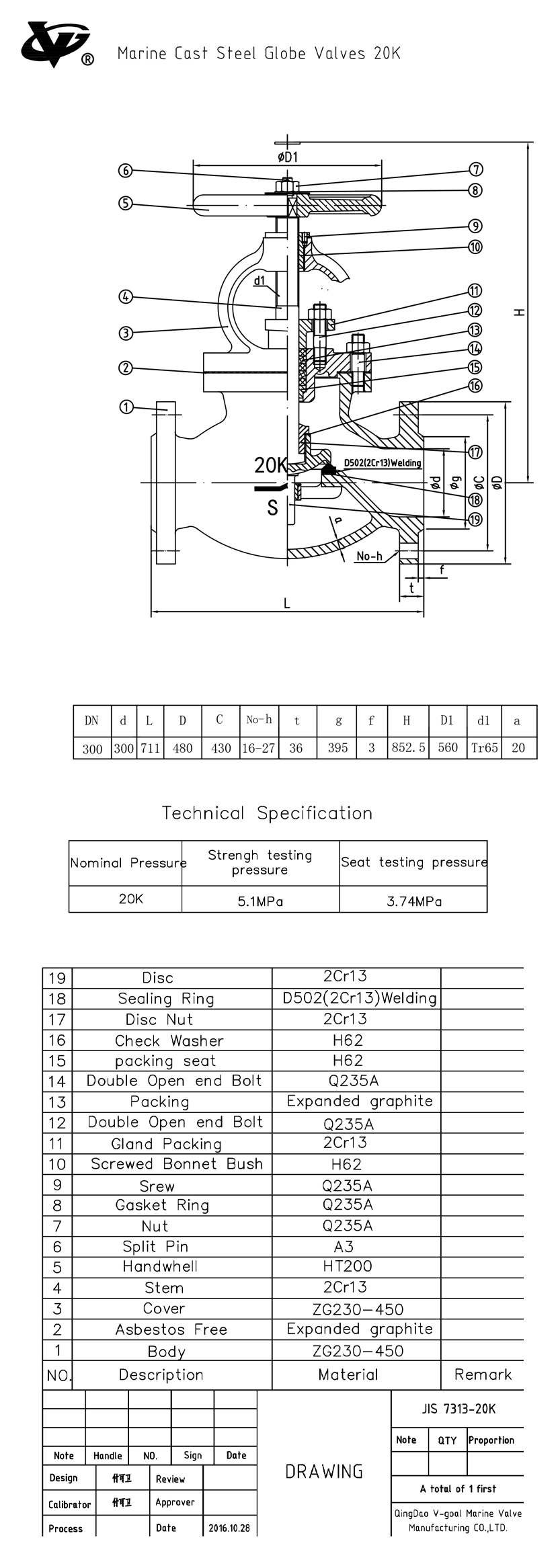 公稱壓力: 20K 公稱通徑: 300