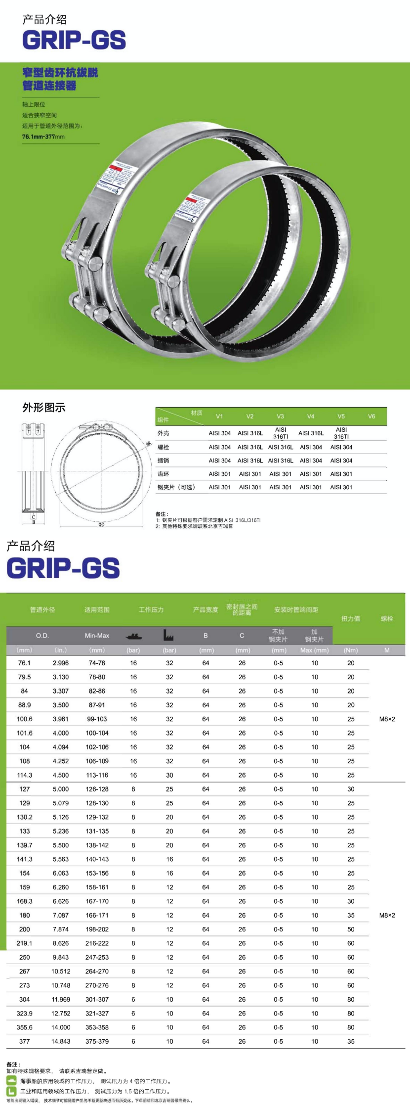 管道外徑: 139.7mm 適用范圍: 138~142mm