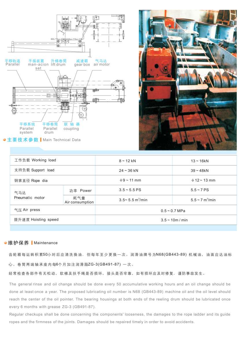 | 鋼索直徑: | 12~13φmm | 工作壓力: | 13~16KN |