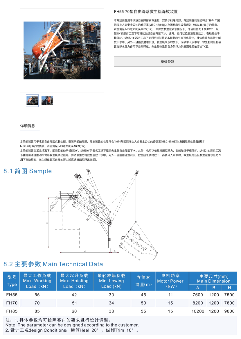 | FH55-70型自由降落救生艇降放裝置 | |||