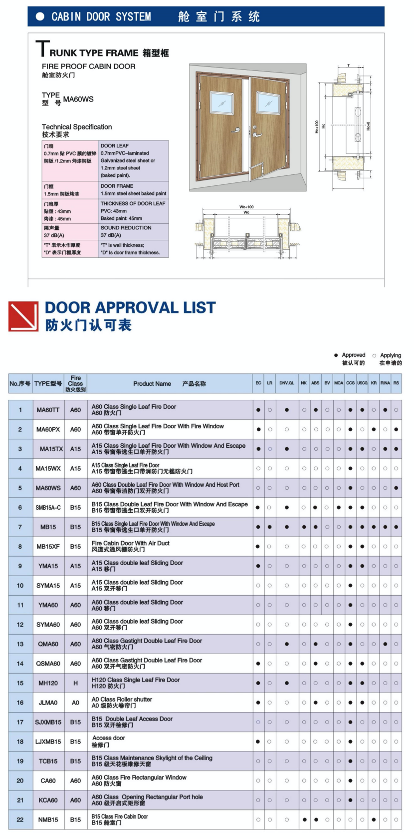 艙室門系統S型框艙室防火門