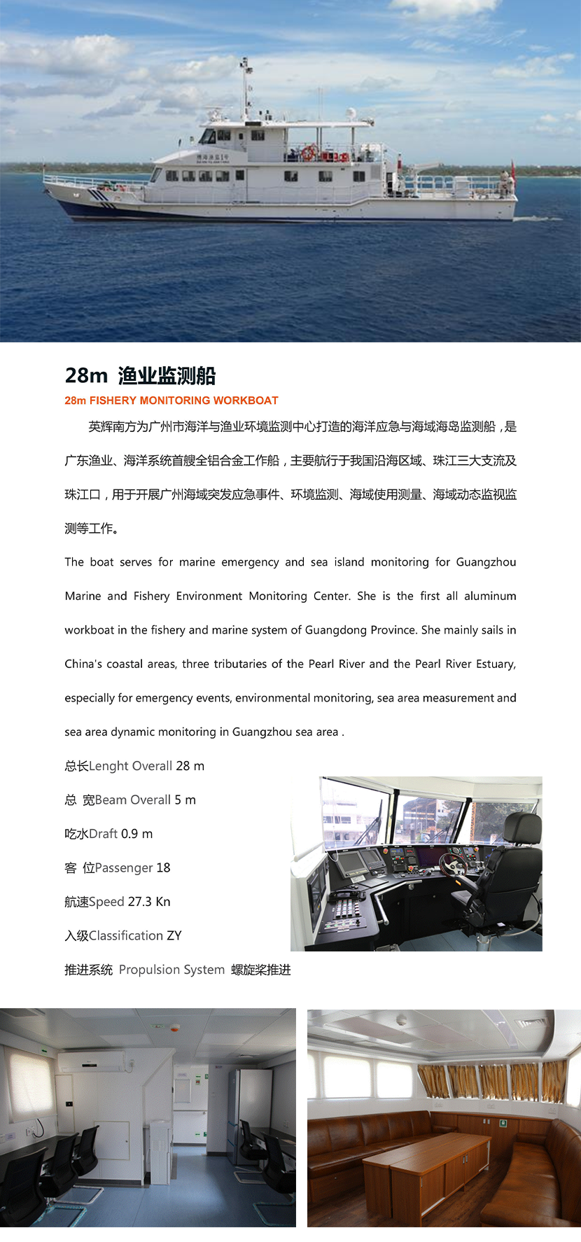 吃水深度: 0.9m 推進方式: 螺旋槳推進