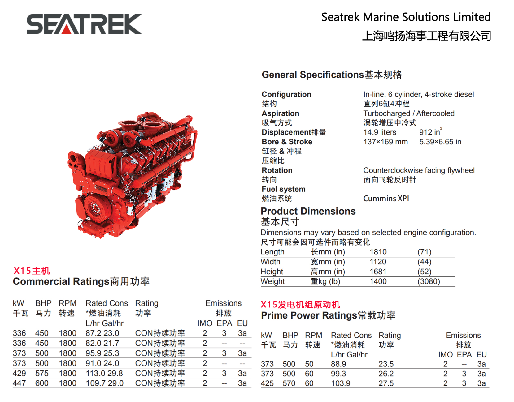 功率等級: CON持續功率 燃油系統: Cummins XPI