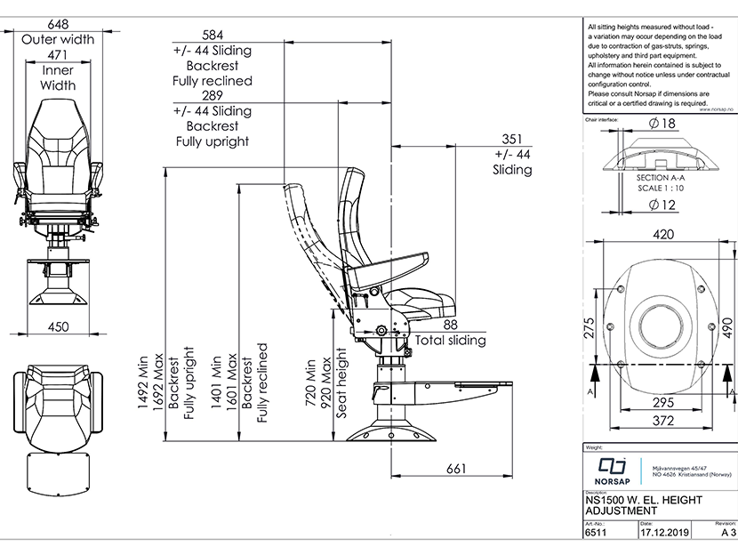 1500系列電動支撐桿高度可調船用抗震座椅